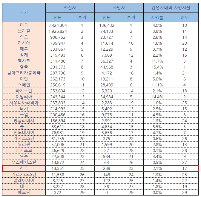 ♣ 세계 코로나 확진자 순위