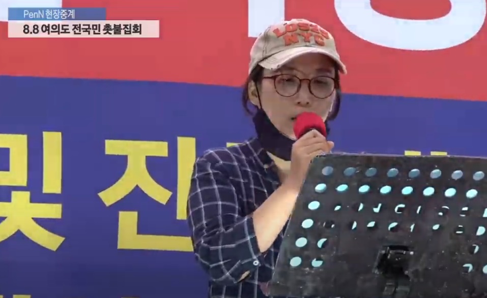 본인들이 받은 피해를 연설하며 위법에 대한 본인들의 주장을 애기합니다.
